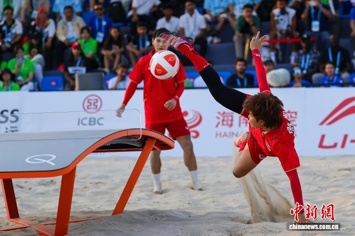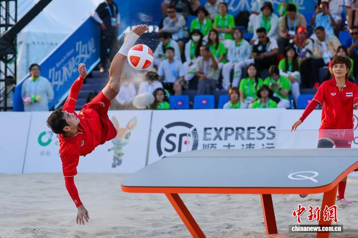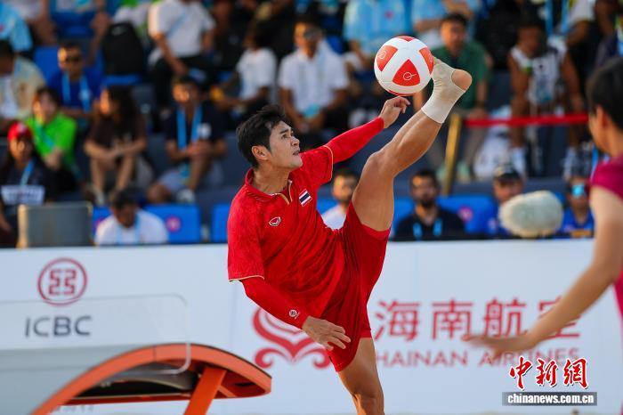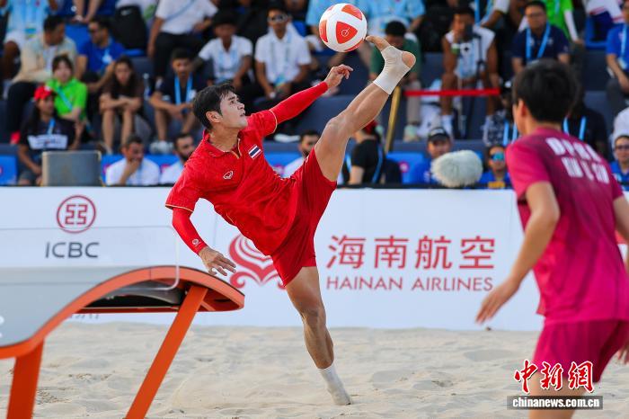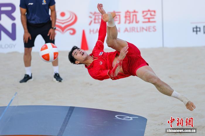 图为泰邦选脚德贾罗恩正在角逐中倒钩入攻。中新社记者 骆云飞 摄