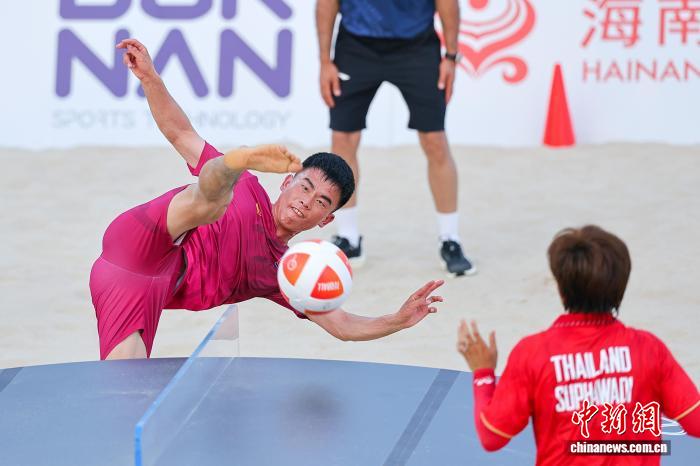 图为泰邦选脚德贾罗恩(左)正在角逐中入攻。中新社记者 骆云飞 摄